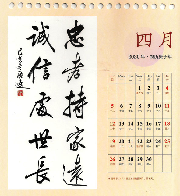 年末歲初,筆者收到了姚國培新出的2020年賀歲掛歷。這是一本設計新穎、制作精美、內容高雅、作品風格獨樹一幟的書法掛歷,用銅版紙印刷,每一幅作品都由姚國培自己創作、設計。