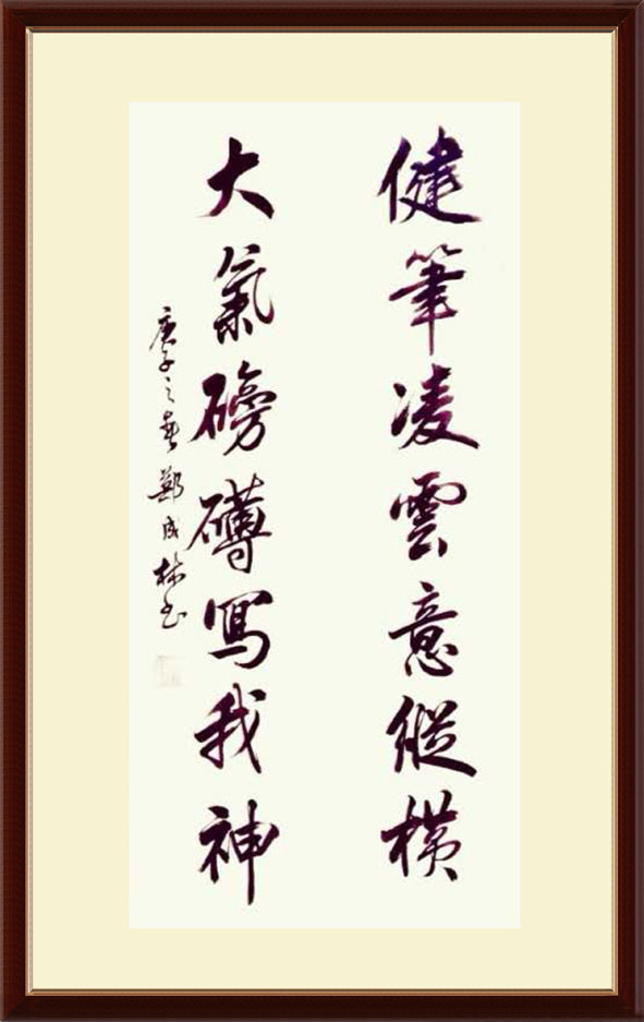 欣賞鄭成林的一幅幅妍美生姿的書法精品,有兩點給人印象很深:一是作品體現出鮮明的時代性。他運用我國傳統的書法藝術“解其言,知其意,明其理”,通過書寫、創作,進一步深入學習領會習近平新時代中國特色社會主義思想,牢牢把握新思想的主線和靈魂,深刻領會新思想的精神實質和豐富內涵;二是作品風格平和自然,筆勢委婉含蓄,遒美健秀,自成一格。