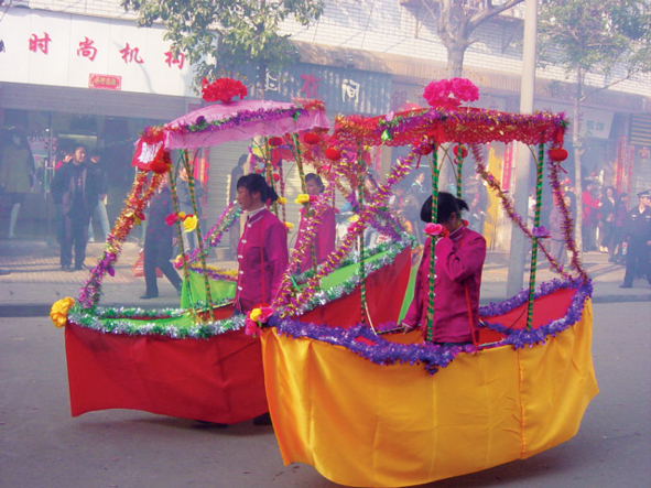 古時人們都是使用農歷,來計算時間日子。清版《光澤縣志》“風俗”篇記載了當地從農歷年初到年尾,四時年節都有自己特有的風俗習慣。元旦,正月的元日,就是現在的春節初一。家家掛鐘馗像于庭中,謂之“辟邪除魅”。門上春帖以紅紙書聯,還有色紙縷金錢或花草人物遍貼于廳柱門庭,謂之歲錢,“以著更華彩之意”。“五鼓爆竹開門”,家家放炮后,家中先焚香,男女穿著新衣,順序先謁拜天地賀新年。然后才開家門,向左鄰右舍道賀新年。說是過去有紛爭的鄰里通過新年互賀,舊有的怨恨也冰釋殆盡。各家備有禮物,走訪親友,請新女婿,喝酒吃肉慶賀。當地民謠曰:“賀歲喝到初五六,有酒也無肉。新年正月,“各坊迎神”。城中當時8個坊輪流從初二開始迎接福神降臨,龍燈挨家拜。有錢人家或廟會招戲班看大戲,演贛劇和當地三角戲,慶祝升平。沿街裝飾樓臺,夜點花燈,龍燈、獅燈、茶燈、船燈、花燈、蚌殼燈等燈舞鬧年一直到元宵。立春,常在正月,接春在當地是大節,一年之際在于春。時辰一到,家家戶戶放炮,擺上供桌供品。用白菜和蔥蒜等綠葉長青的菜用紅線扎起,以示“迎春接福”“新春大吉”之意和春天萬木興榮的好兆頭。初九是玉皇大帝生日,興辦祭祀活動。“上元觀燈”,初十至十五特別是元宵節張燈結彩,鼓樂花燈,徹夜不息。十五過后,“里塾就學”,家人的子侄后輩開始擇吉日延師課以詩書,農工商賈各開始就業。當地諺語:“燒訖上元紙,各人安生理。”