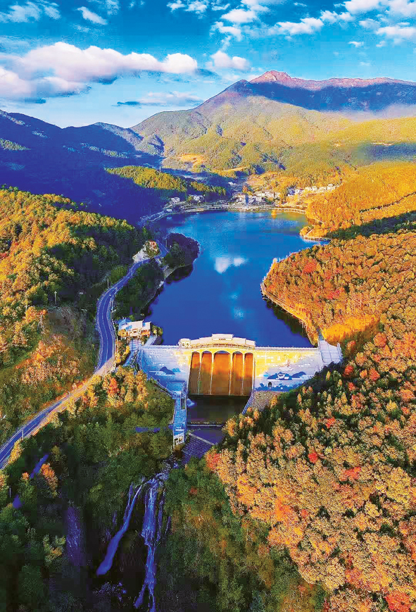 小車在蜿蜒陡峭的山路上逶迤爬行,到了山頂,眼前豁然開闊起來,遠處層巒疊嶂,林深竹茂,層林盡染,深谷流泉飛瀑似一條白練垂掛在山澗。秋意盈盈的仙女湖碧波蕩漾,湖水畔白墻青磚灰瓦、木窗樓閣的客家民居建筑醒目而整齊,一排排高高掛起的紅燈籠格外吸人眼球,一派喜氣洋洋的景象,給人一種小清新的感覺,“來武平我氧你”六個大字在陽光的照耀下熠熠生輝,這個地處國家級自然保護區梁野山腹地的中國美麗休閑鄉村福建武平城廂云寨村背靠巍峨雄偉,壁立千仞,山勢險峻的梁野山主峰,倚傍梁野山的青山綠水,山清境幽,原始和天然在這里交織成一幅如詩畫卷,仿若步入人間盛景。