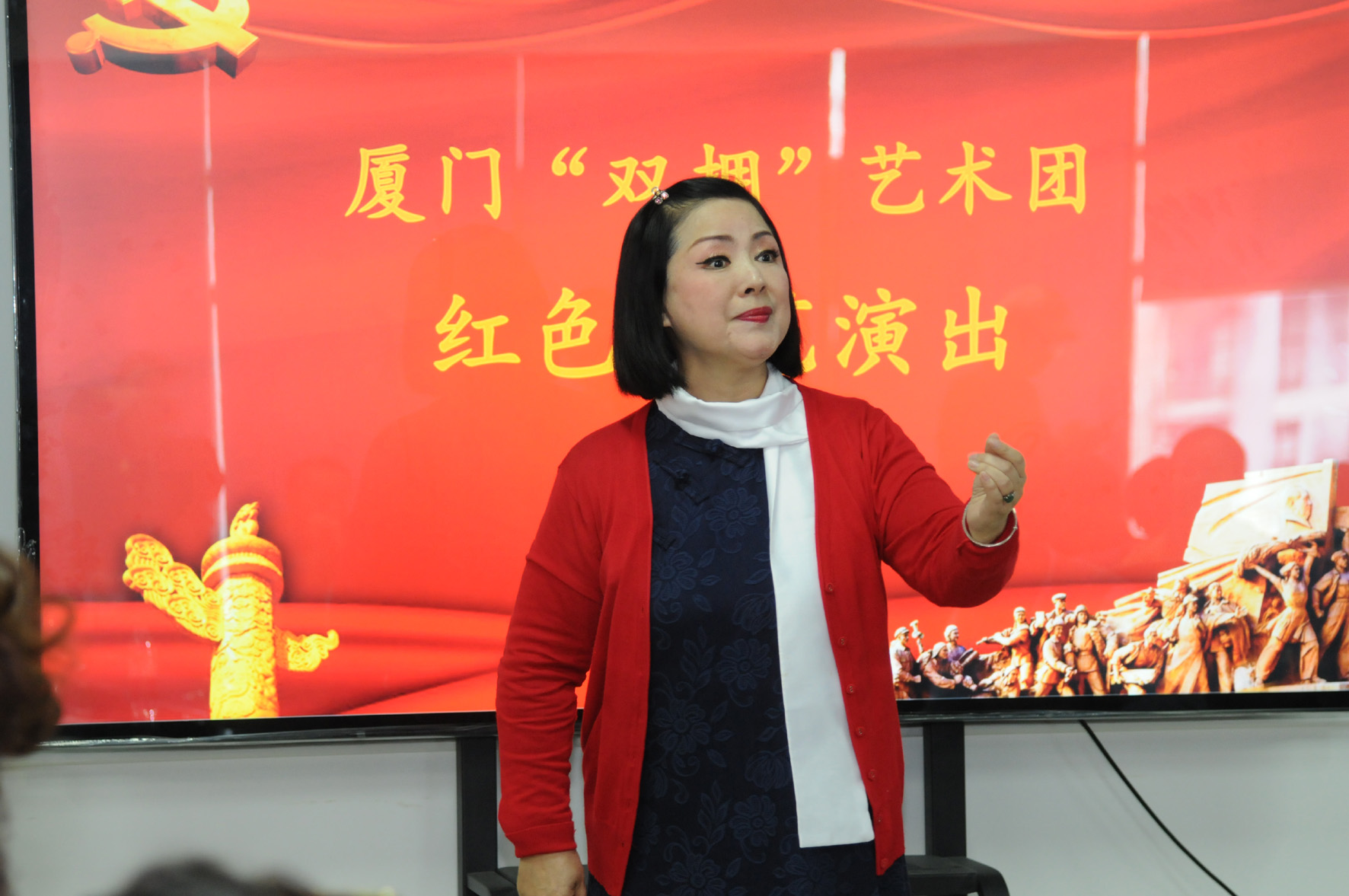 現場還舉行了“走進英雄毛澤東”講座、毛澤東專題知識有獎競猜等活動。廈門“雙擁”藝術團演員一首首熱情洋溢的致敬革命英烈紅歌,給人鼓舞和力量。
