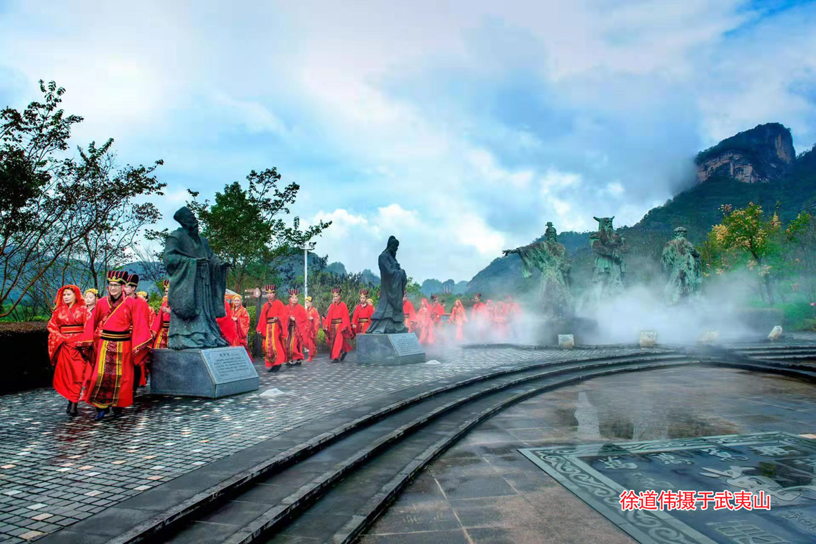 《武夷山之歌》通過謳歌武夷山的山、水、文化、茶以及“武夷山水”區域公用品牌等,贊美武夷山的綠水青山、鐘靈毓秀和物華天寶。讀罷《武夷山之歌》, 神奇而富有魅力的大美武夷躍然紙上,無不令人思緒奔涌、遐想翩翩。武夷山之美,美在其山,武夷山屬典型的丹霞地貌,這里有三十六峰九十九巖的丹山雄姿,其中以大王峰、玉女峰最為著名,大自然孕育出各種令人心馳神往的奇特自然景觀。這種巧奪天工之美只能歸功大自然造化了。所以,作者用“蒼天”,“恩賜了大王峰的尊容”來表達武夷山之美。武夷山之美,美在其水,“十里溪流通宛轉,千尋到岫盡嶙峋” ,作者用“碧水”,“分享著玉女峰的秀容”來表達武夷山之美。武夷山之美,美在其文化,中華民族五千年的歷史血脈在這里流淌傳承,有千古之謎的架壑船棺,有兩千多年的閩越古漢城,有三教同山、和諧融合的輝煌歷史。武夷山,這是一片神奇而富有魅力的土地,這是一處自然與人文交相輝映的人間仙境,既是“中國的武夷山”,也是“世界的武夷山”。武夷山之美,美在其茶,“溪邊奇茗冠天下,武夷仙人從古栽”,武夷巖茶歷史悠久,它以獨特的巖韻和悠久的茶文化而享譽中外,是中國十大名茶之一,在我國茶葉發展史上占有重要的地位。