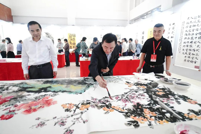 活動現場,來自全省各地的書畫藝術家分12張案桌創作。藝術家們揮毫潑墨、行云流水,用一幅幅主題鮮明、格調高雅的書畫作品,獻禮黨的二十大,表達全省人大系統團結奮進,共同推動新時代人大工作高質量發展的堅定信心和滿腔熱情。