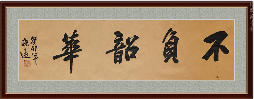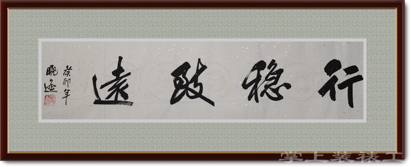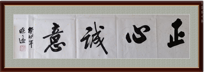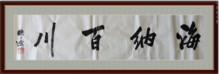 姚國培的書法,從用筆上來看,尤其是他的大字用筆渾厚,用墨非常飽滿。方中帶圓,有一定的魏碑意趣。從結(jié)體上來看,姚先生應(yīng)當(dāng)是臨習(xí)過圣教序和李思訓(xùn)碑的。圣教序是懷仁集王羲之的字,這個碑是行書里面非常有名的碑,是學(xué)習(xí)行書的人首先的一個帖子。圣教序的字,結(jié)體以欹斜多變著稱,用筆瘦硬勁拔,是王羲之書中集陽剛美與流暢宛轉(zhuǎn)之勢為一體的代表書風(fēng)。李思訓(xùn)碑,同樣也是以用筆瘦硬勁健,結(jié)體欹斜開張著稱。相比較而言,李思訓(xùn)碑的結(jié)體欹斜對比更強烈一些,比圣教序的結(jié)體更大開大合一些。這種結(jié)體,整體上給人的感覺是左低右高,重心不穩(wěn),營造出一種突兀拔地而起的氣勢。除外,魏碑中的張猛龍碑也是這種結(jié)體的典型代表。宋代的黃庭堅進一步發(fā)展了這種欹斜相生,大開大合獨特的書風(fēng),形成了長槍大戟,開合對比非常強烈的一種字體。從姚國培的字中可以看到其中上述諸人的影子,這說明他對傳統(tǒng)的碑帖是下過不少功夫的,吸收了多家特點。相比較他的小字,應(yīng)當(dāng)說他的大字更好,更加有氣勢,也更為雄渾一些。姚國培的書作,主要是以對聯(lián)以及格言警句,四字和六字、七字的對聯(lián)行形式多。應(yīng)當(dāng)說,姚國培的字如果創(chuàng)作一些長篇形式的作品,也會很不錯的,形式將更豐富多變一些,也更利于字體的多方面布局與表達。