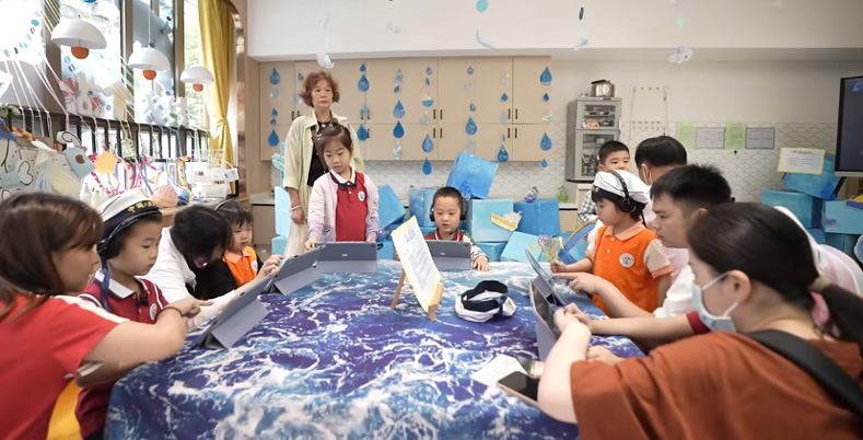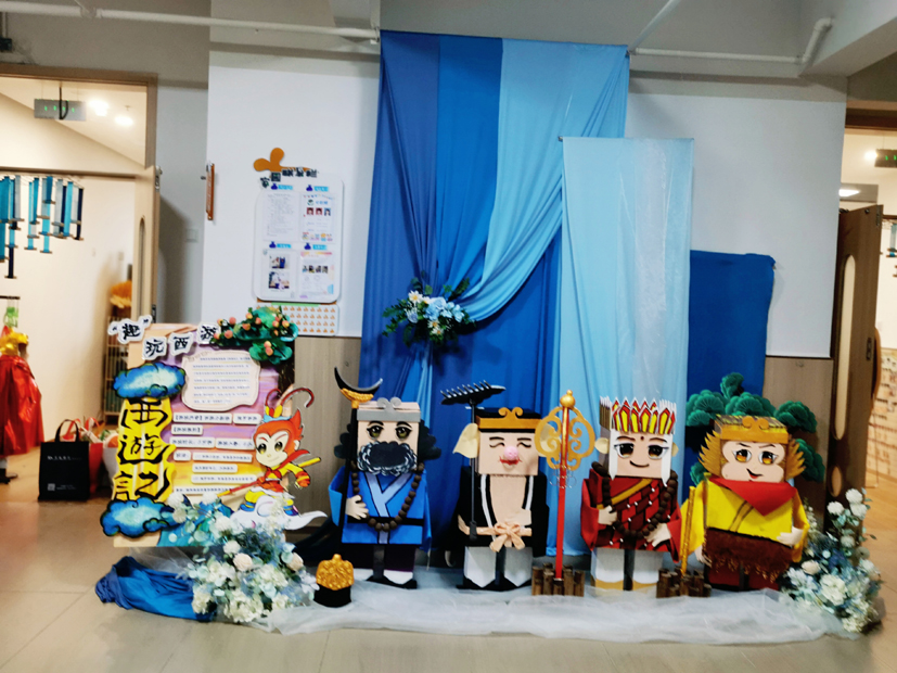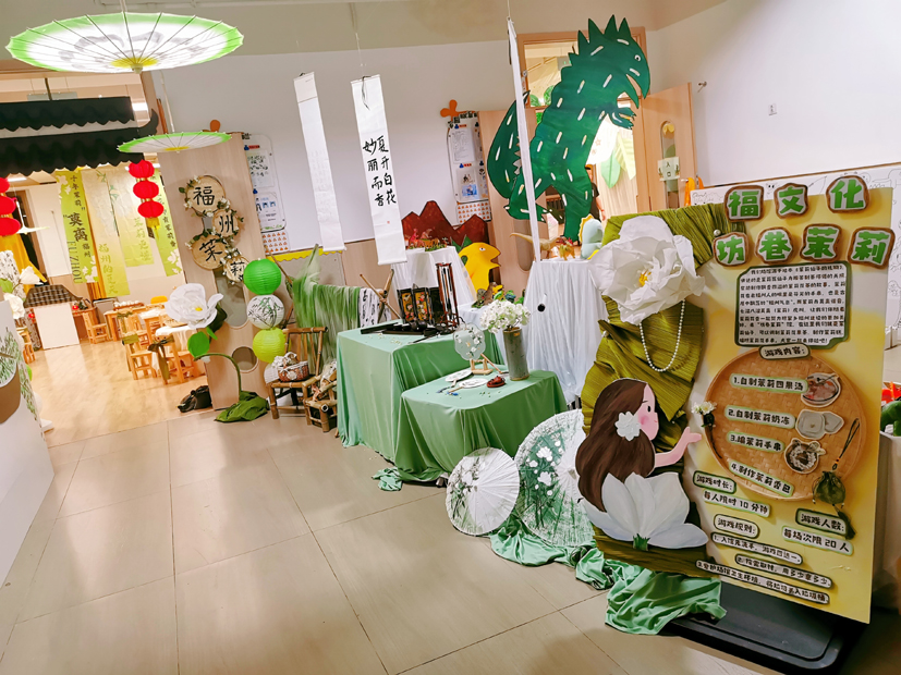 幼兒園為孩子們打造了12個(gè)各具特色的“故事游園館”,引導(dǎo)孩子們?cè)凇缎◎蝌秸覌寢尅贰段饔斡洝返冉?jīng)典童話故事中感受真、善、美;在閩都故事、福文化故事中了解福州的民俗文化,萌發(fā)愛(ài)家鄉(xiāng)的情感;在《雞毛信》等紅色故事中感受英雄的力量……