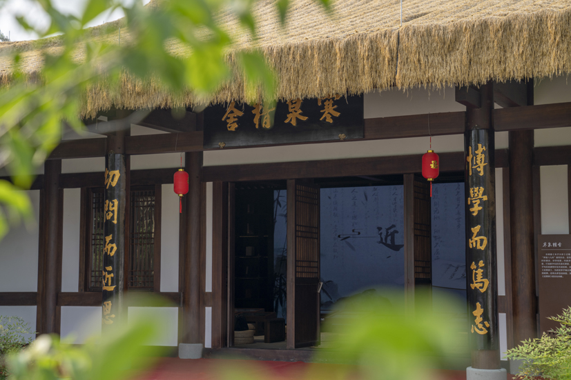 從馬伏出來(lái)向東,路邊的稻田,是被綠意侵染的詩(shī)行,水洼倒映著天光云影,一個(gè)轉(zhuǎn)角,抖落煙灰的剎那,我等便來(lái)到了位于后山鋪的“寒泉精舍”。漫步精舍內(nèi),幾間古樸的茅屋,屋頂?shù)拿┎荩陉?yáng)光照耀下泛著淡淡的金色,恍惚間看到了朱子在與弟子們坐而論道,朱子的聲音沉穩(wěn)而有力,墻上鑲嵌著的《近思錄》語(yǔ),猶如一盞盞明燈,照亮了弟子們前行的道路。朱子墻前駐足沉思,同行的友人忽問(wèn):“爾等出生理學(xué)淵藪,何謂朱子理學(xué),可以一語(yǔ)釋之乎?”。