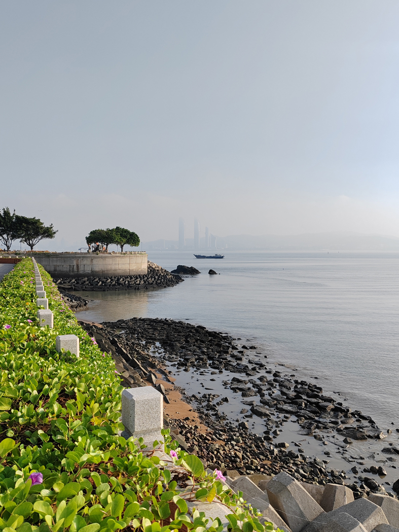 登頂“五樓”觀景臺,極目遠眺,但見九龍江如銀河蜿蜒,廈門島若隱若現(xiàn),更遠處臺灣海峽的波光與東海的煙濤,連成一片浩渺。“山下看的是人間煙火,山上看的是大海星辰”。鄭成功后裔、龍海文人梧閩先生的詩句,此時與我產(chǎn)生了強烈共鳴。