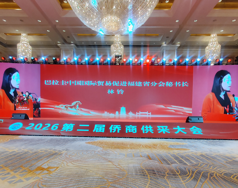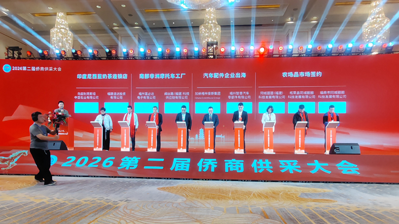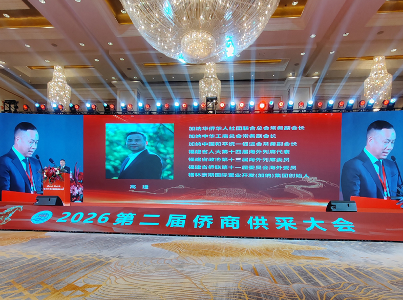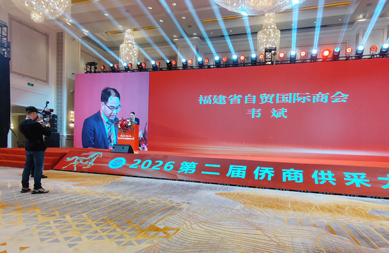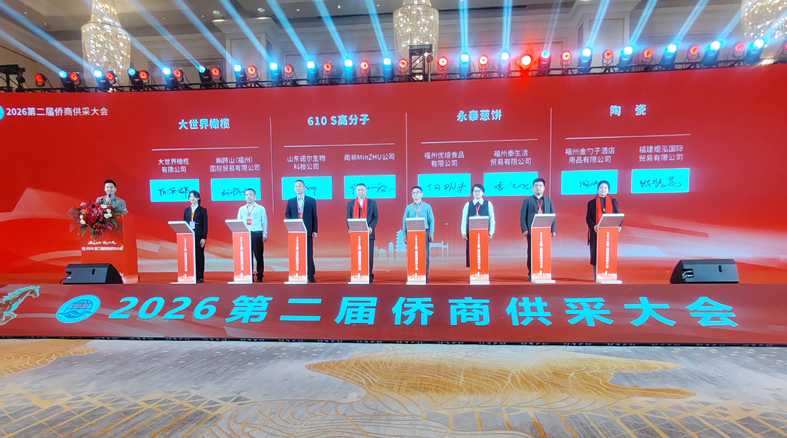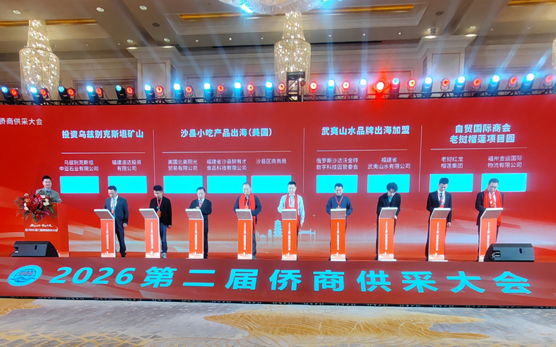 2026年2月28日,第二屆僑商供采大會在福州中庚喜來登酒店成功舉辦。商務部駐福州副特派員陳霖,福建省人民政府顧問武評,福建省工商聯副主席林龍金,福建省僑聯副主席翁小杰,福建省工商聯黨組成員、秘書長施文彪,商務部駐福州特辦處長胡國愛等領導參加本次大會;省商務廳、福州海關到會進行政策解讀。林向榮、施洪清、陳建崇、高建、梁峰、王祖濤等世界僑商僑領發言,分析所在國營商環境及貿易與投資環境。中富通集團、福建省宏盛幸福石墨烯科技集團、奮安集團、福州大世界橄欖、良辰美文化傳媒、福建閩高電力股份有限公司、倉山閩江海外發展服務中心等國內企業上臺推介;香港倍佳集團分享企業出海經驗。來自國內外企業800余人參加本次大會。