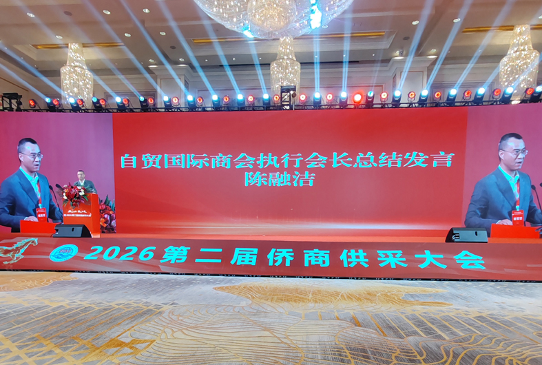 福建省自貿國際商會會長韋斌在致辭中表示:商之僑,僑之商;商為橋,僑為商,供采大會風采無限。通過舉辦大會,鏈接海內外僑商,海內外企業相聚一堂洽談合作。福建省自貿國際商會秉承 “互聯、互通、共建、共享” 辦會精神,誠摯邀請海外僑團參與2027第三屆僑商供采大會主辦、協辦工作。